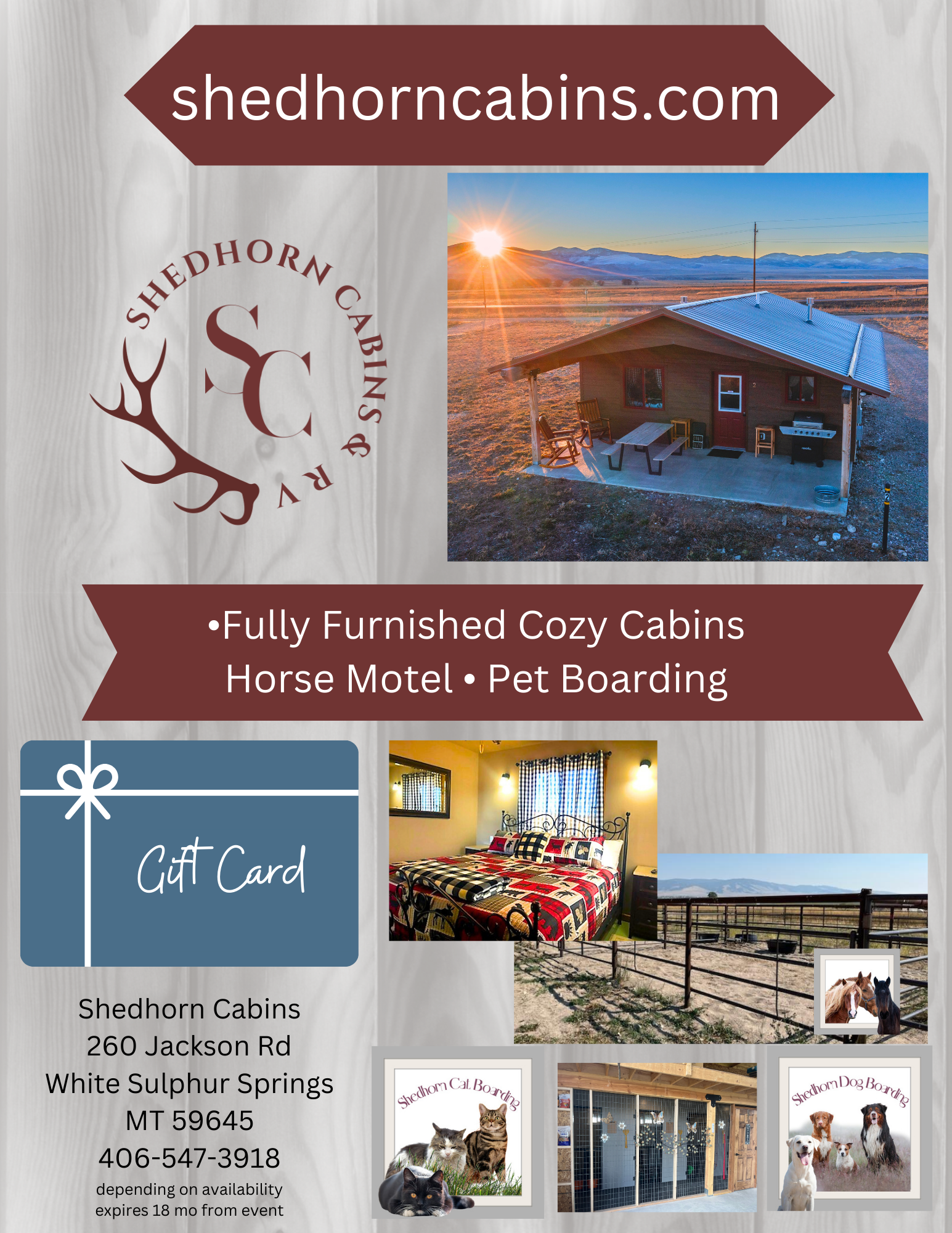 Share the gift of Shedhorn Cabins, Horse Motel & Pet Boarding! If you would like a more specific amount, please contact us HERE